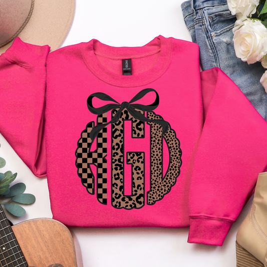 Brown Lepoard Coquette Bow- Custom Monogram Transfer