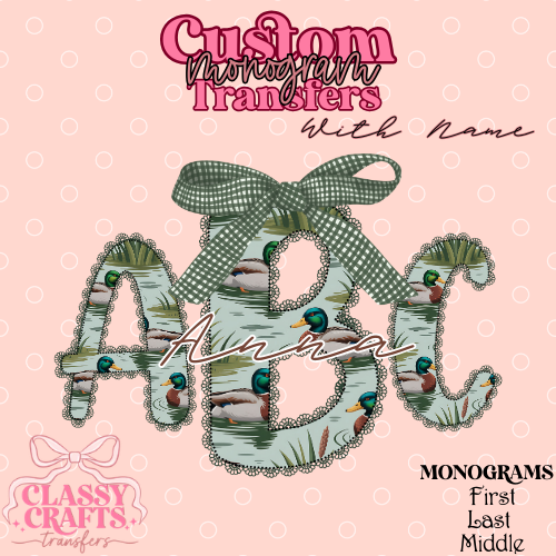 Preppy Lace Mallard - Custom Monogram Transfer