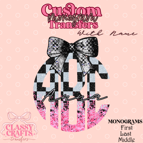 White & Pink Checkered Racing - Custom Monogram Transfer