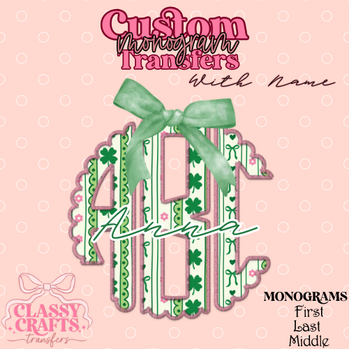 Coquette Shamrocks & Bows - Custom Monogram Transfer