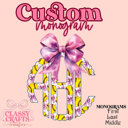 Softball Bow Scalloped- Custom Monogram Transfer