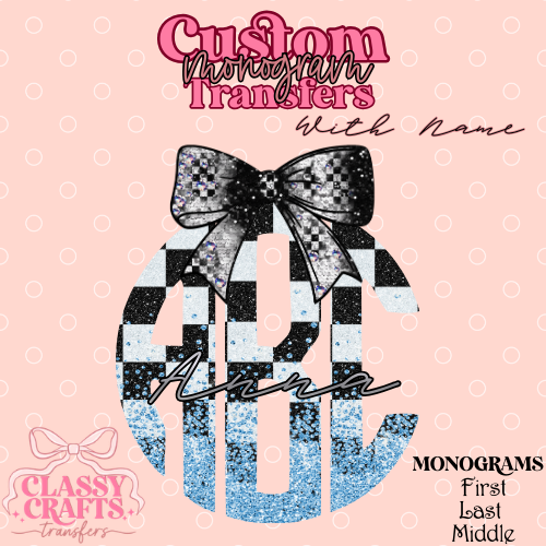 White & Blue Checkered Racing - Custom Monogram Transfer