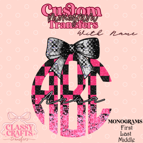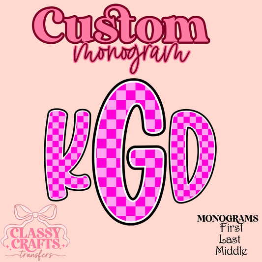 Neon Pink Checkered- Custom Monogram Transfer