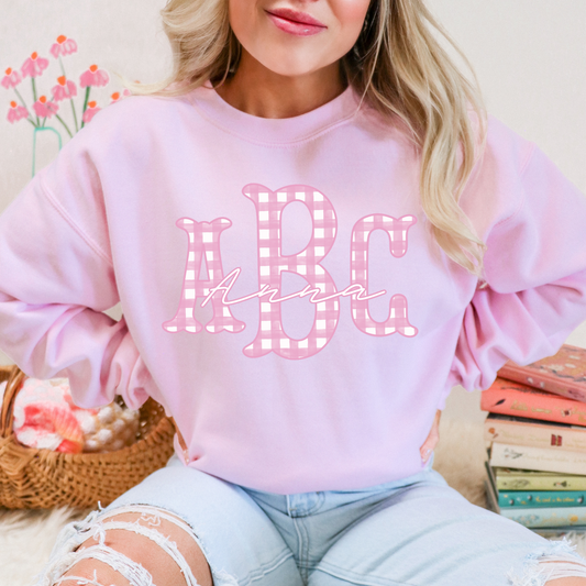 Light Pink Gingham Fishtail - Custom Monogram Transfer