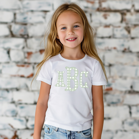 Sage Green Gingham Fishtail - Custom Monogram Transfer