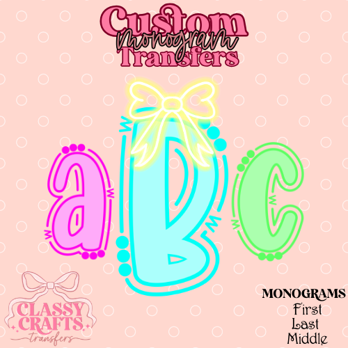 Preppy Neon - Custom Monogram Transfer