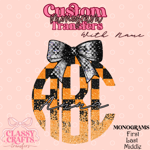 Orange & Black Checkered Racing - Custom Monogram Transfer