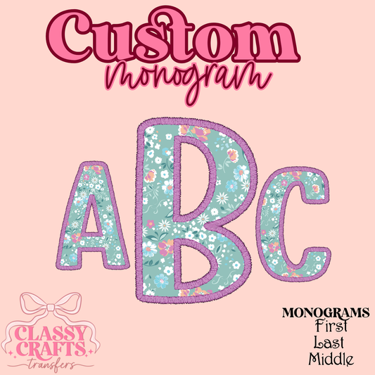 Preppy Floral Cursive - Custom Monogram Transfer